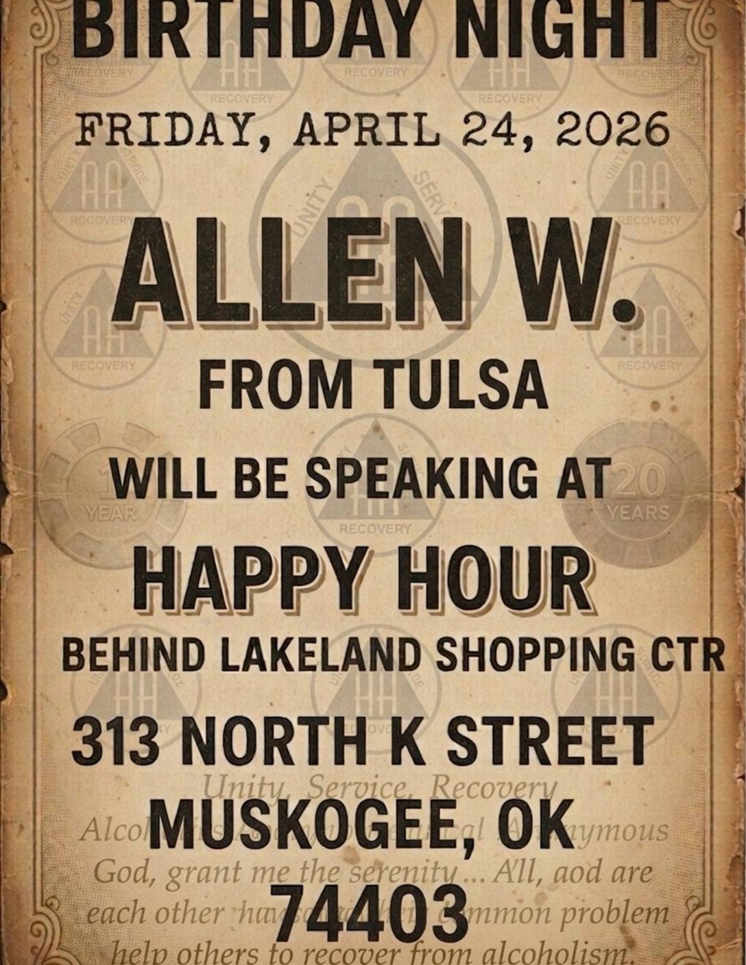 Muskogee Happy Hour Birthday Night